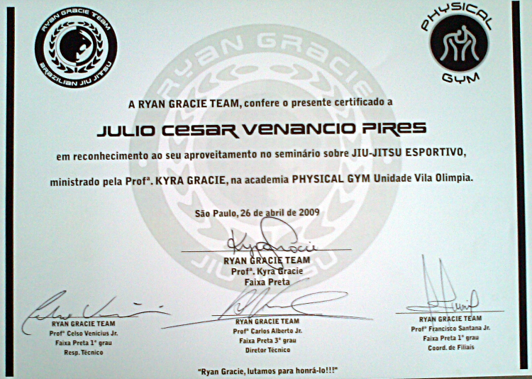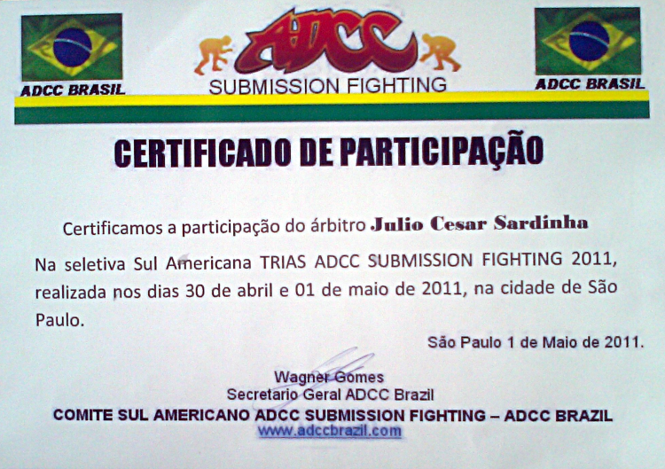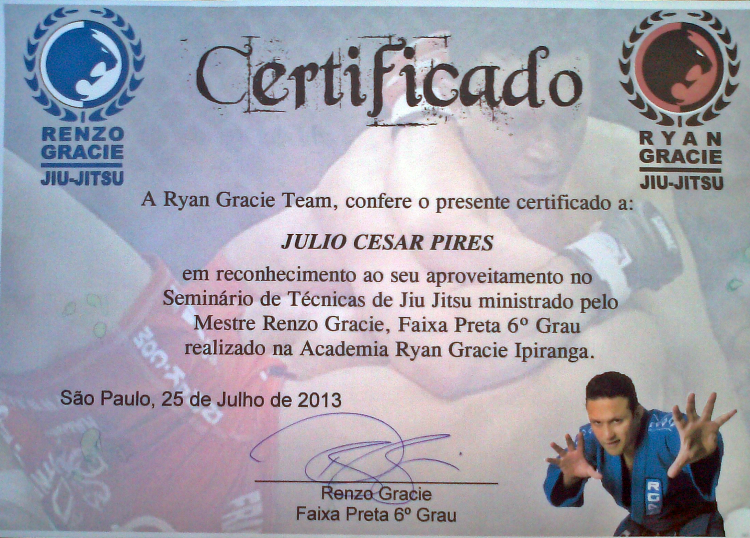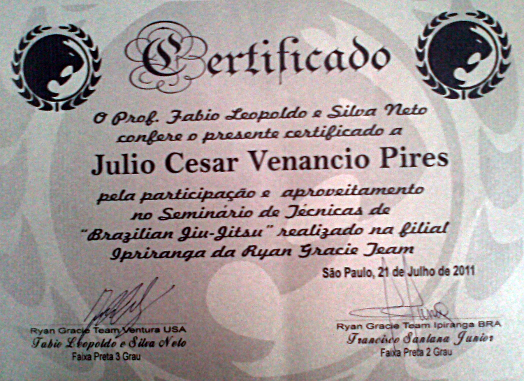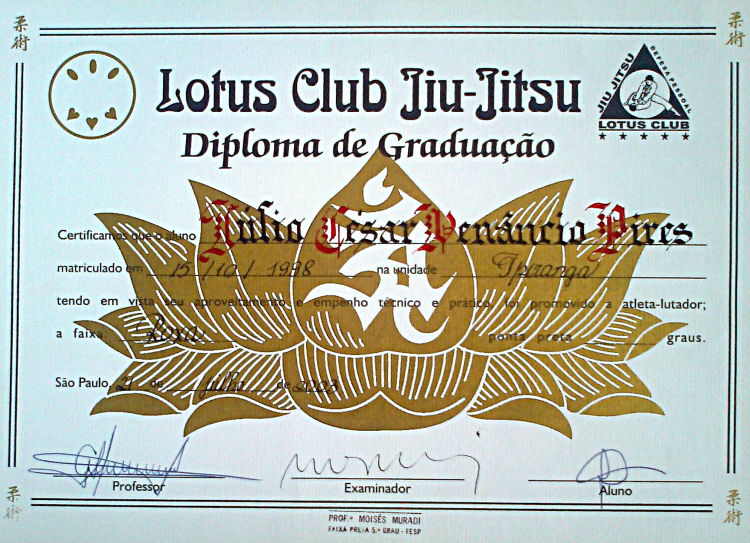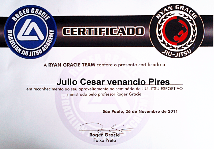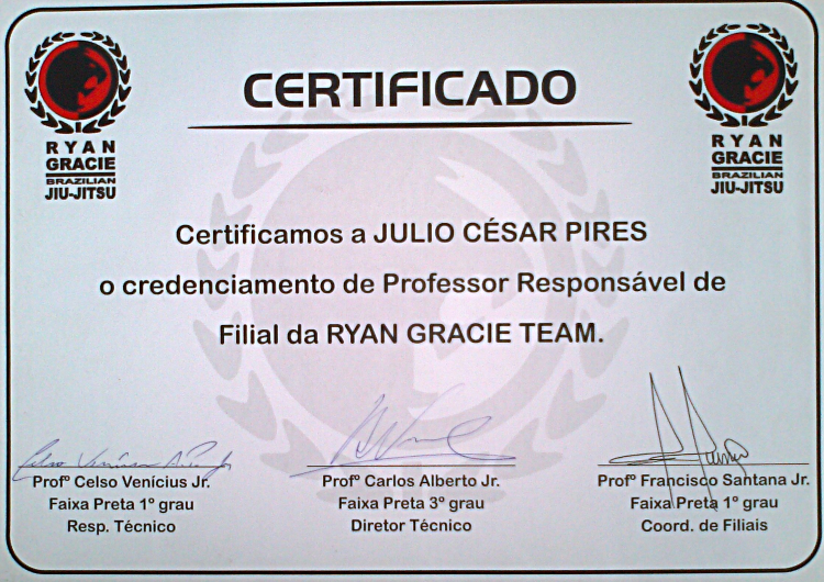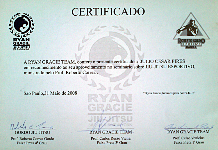 Homologado pela F.P.J.J. (Federação Paulista de Jiu-Jitsu) na qualidade de Professor Faixa Preta 3º Grau, o que lhe confere todas as prerrogativas dos estatutos sociais registrados.